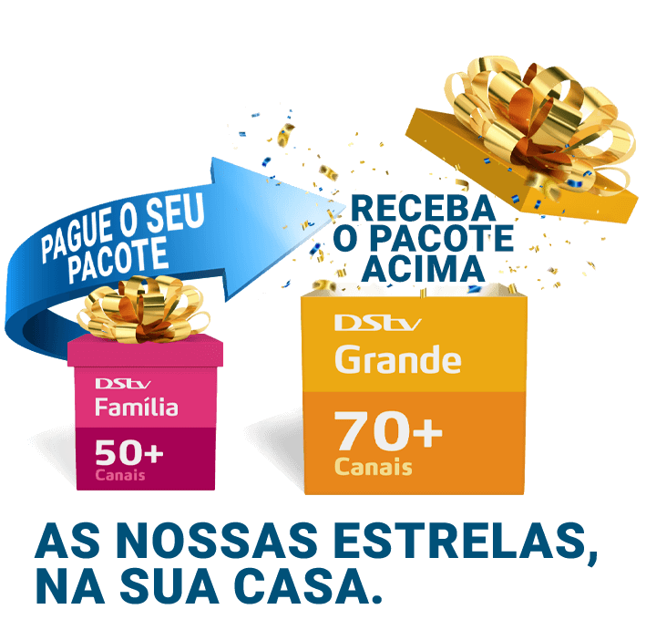 Pague o pacote DStv Básico e receba o pacote DStv Fácil, pague o Fácil e veja o DStv Família. Os clientes do DStv Família irão poder desfrutar do DStv Grande, os clientes do DStv Grande receberão o DStv Grande+, enquanto os clientes do Grande+ vão experimentar a excelência do conteúdo do DStv Bué.