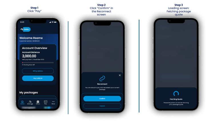 Customers can reconnect or pay for an inactive account by selecting pay on the new MyDStv App dashboard.