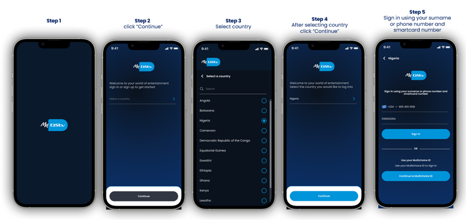 Customers can sign in using their MultiChoice ID or using the Smartcard number and surname or phone number option. Once successfully signed in they will be directed to the MyDStv app dashboard.