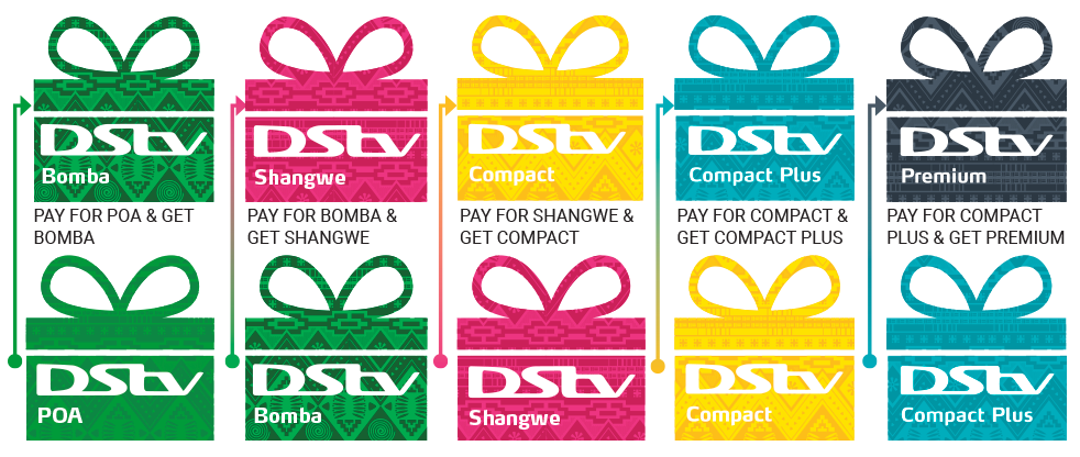 Pay for DStv POA and get DStv Bomba, DStv Bomba customers will get DStv Shangwe, DStv Shangwe customers will enjoy DStv Compact, DStv Compact customers get DStv Compact Plus, while Compact Plus customers will enjoy content on DStv Premium.