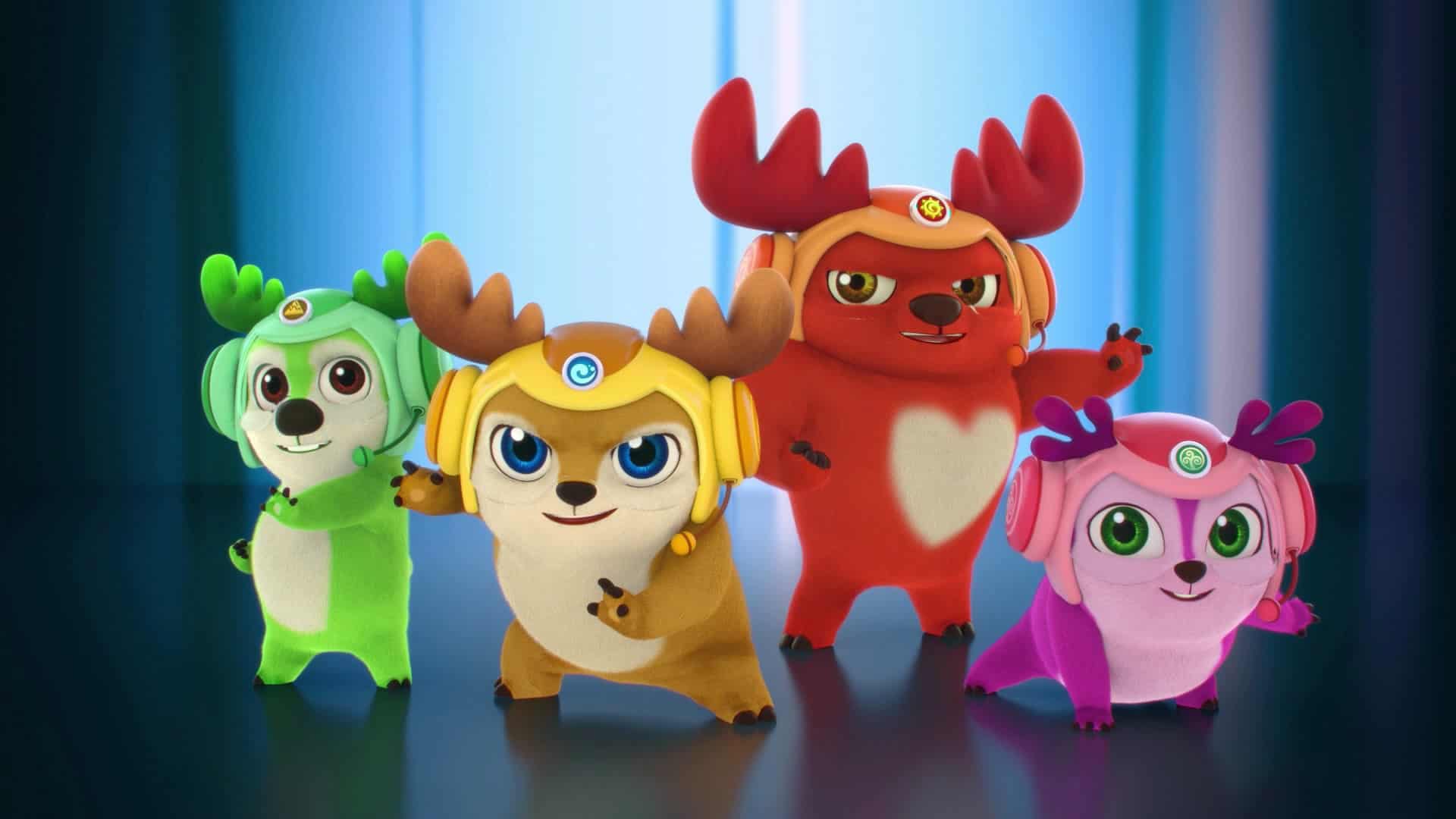 Deer friends Kai, Lola, Rammy and Bobbi band together to defend Central Forest and all the inhabitants of futuristic Platinum City, which surrounds their forest home (think Central Park and New York). Alone, they are ordinary deer, but together, they’re able to harness elemental powers – Water (Kai), Wood (Lola), Earth (Bobbi) and Sun (Rammy) – to defeat foes like giant doughnuts and ice robots, and the worst enemy of all, the dastardly Sir Steal, a villain who does things like kidnaping all the bees in the park, or allows his blimp to run amok in the city during a parade. Each of the Deer Squad has their own super-powered, all-terrain vehicle to help them on their way.