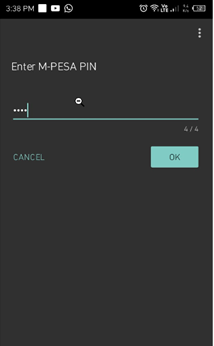 - Inserir o pin M-PESA e clicar OK