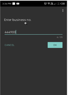 - Inserir número de negócio e clicar OK